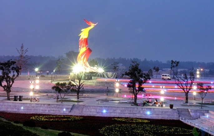 桃園橡膠壩位于南坊新城區東側,版權所有山東聊城聊之旅國際旅行社有限公司,轉載必究!沂河北大橋下游100米處, 2005年1月開工建設,2006年6月建成蓄水, 樞紐總長度1113.50米,主要由橡膠壩及供排水系統、左岸船閘和右岸溢流堰組成。其中橡膠壩全長783.2米,壩高4.5米,壩袋共10節,每節凈長77米,船閘總長167米,凈寬8米。橡膠壩墩上設計有9條雕塑龍,每條長約9.5米,高約4.5米,龍體為金黃色,龍嘴、龍眼由大型燈泡裝飾而成的夜明珠構成,龍身配有近、遠光燈,氣勢雄偉,光彩照人,尤其夜晚寶珠熠熠生輝,龍體變幻迷離,在沂河北大橋的映襯下,形成魚躍龍門之勢。