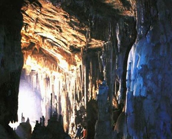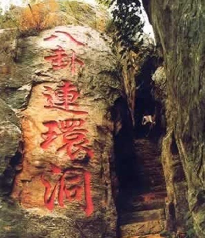 八卦連環洞位于費縣玉環山西側,上至玉皇頂,下至玉環莊,南連仙水洞,北接南天門,方圓約千畝。是一個“捆山腰”上的溶洞群,因形如《易經》中的八種圖形而得名,由的小十二個洞穴構成,洞與洞之間又多有通聯,洞里洞外都有景,有“大景點大境界”之譽。