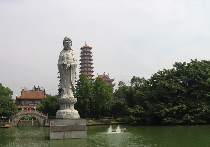 西禪寺名列福州五大禪林之一,為全國重點寺廟,位于西郊怡山之麓,在工業(yè)路的西邊,比鄰于福州大學(xué)的南側(cè),巍峨而壯觀。門票20元、學(xué)生票10元。古剎大門坊柱上鐫刻一副楹聯(lián):“荔樹四朝傳宋代,鐘聲千古響唐音。”這是清代周蓮撰寫的聯(lián)句,點明"西禪寺"是唐朝的古寺。