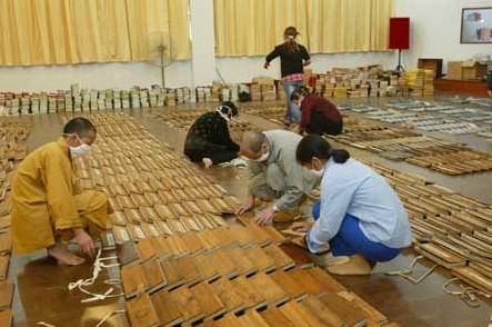 藏經(jīng)殿在鐘樓東南側(cè),建于清順治十六年,內(nèi)存自宋朝以來歷代皇帝御賜的各種經(jīng)書,加上本寺刻印的經(jīng)書共20346冊(cè),放在十二個(gè)大櫥內(nèi);其中有清康熙到乾隆年間御賜的經(jīng)書《明朝南藏》、《明朝北藏》、《清朝梵本》、《書本藏》、《日本敘藏》 以及御筆《藥師經(jīng)》等幾千部。