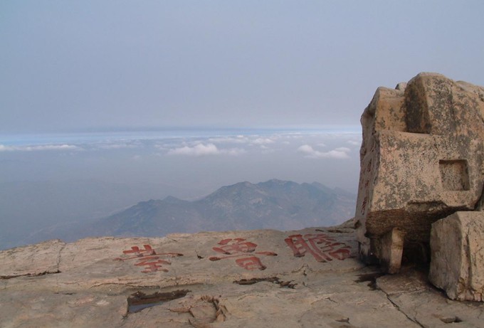 瞻魯臺位于日觀峰南側,石梁突兀,平展如臺,臺上有巨石,上刻“瞻魯臺”三大字,寓意在此可遠瞻魯國曲阜。