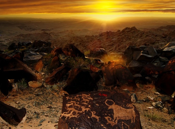 曼德拉山巖畫位于巴丹吉林沙漠東緣曼德拉蘇木西南14公里的曼德拉山中,在18平方公里內,分布著4234幅數千年前的古代巖畫,是世界最古老的藝術珍品之一,堪稱“世界第二,亞洲第一”。曼德拉山巖畫雕刻精湛,圖案逼真,形象生動,古樸粗獷,年限可追溯到原始社會晚期和元、明、清各代,記載了當時的經濟、文體、生活情景和自然環境、社會風貌。