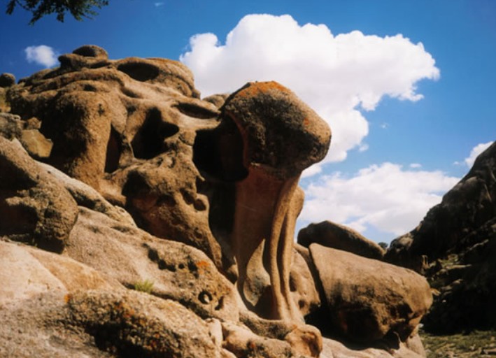 觀山猶海,哈不茨蓋怪石林(神石溝)一群率真又爽快的朋友相邀,一個富于蠱惑而神奇的召喚,一個有關山石鬼魅空靈的話題,一個久遠的神往,于是,在陣雨迷離的清晨,我們結伴向著諾爾公“神石溝”出發了。 一路,漠原底色的焦黃在濃重陰云的籠罩下,淺淺雨韻的滋潤里,陡然生出一些新綠的況味。這時一個關于生命的感悟,關于自然與人的和諧審美,沿著那條鋪向遠天緞帶般的路面。
