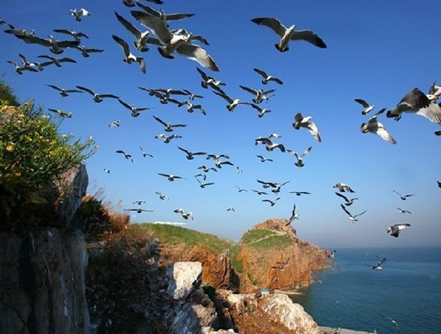 海驢島是鳥的世界。登上海驢島,版權(quán)所有山東聊城聊之旅國際旅行社有限公司,轉(zhuǎn)載必究!只見島上海鷗遍地。眾多的海鷗“咕咕”地叫著,像是歡迎我們游人的到來。由于島上尚無居民,也沒有其它天敵,故海鷗之繁衍越演越烈。有時一大群海鷗同時棲息在一塊巖礁上,必乎覆蓋了整個巖礁,遠遠望去,宛若一塊潔白的冰山呢。