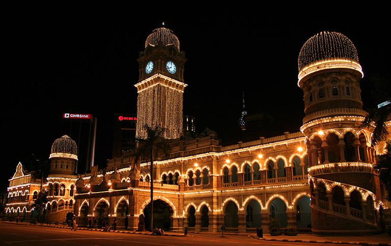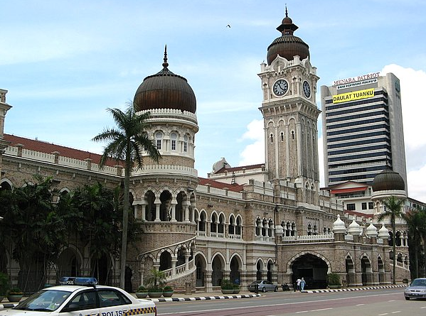 蘇丹亞都沙末大廈是高等法院及最高法院所在地,是吉隆坡的標(biāo)志性建筑。1897年建成,曾經(jīng)是殖民者的總部。當(dāng)初設(shè)計(jì)這幢大樓的兩名設(shè)計(jì)師都曾在印度呆過(guò)一段時(shí)日,他們把大樓設(shè)計(jì)成印度和阿拉伯風(fēng)格奇妙的混合體。樓的中央有一個(gè)40米高的鐘樓,鐘樓的造型類似英國(guó)的“大本鐘”,被稱為馬來(lái)西亞大本鐘,但在鐘樓的頂部加上一個(gè)金色的半球形圓頂。
