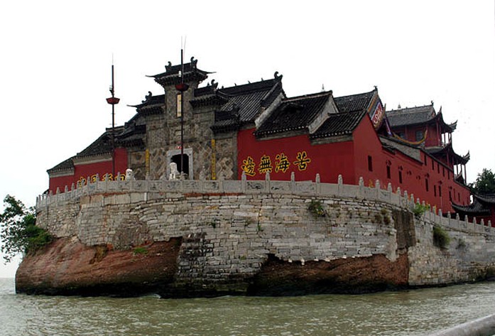 中廟坐落在五大淡水湖,巢湖北岸延伸湖面百米的巨石磯上。石磯呈朱砂色,突入湖中,形似飛鳳,通稱鳳凰臺。古廟坐北朝南,橫峙湖岸,凌空映波,殿高壓云。廟門上有“巢湖中廟”書刻。整個廟宇樓閣重檐飛出,似丹鳳之冠,在晚霞的照射下,燦燦生輝。中廟現(xiàn)供奉關(guān)羽、觀音和諸神。據(jù)傳原奉還有泰山玉女、巢湖焦姥。原中國佛教協(xié)會會長趙樸初曾盛贊中廟“湖天第一勝境”。