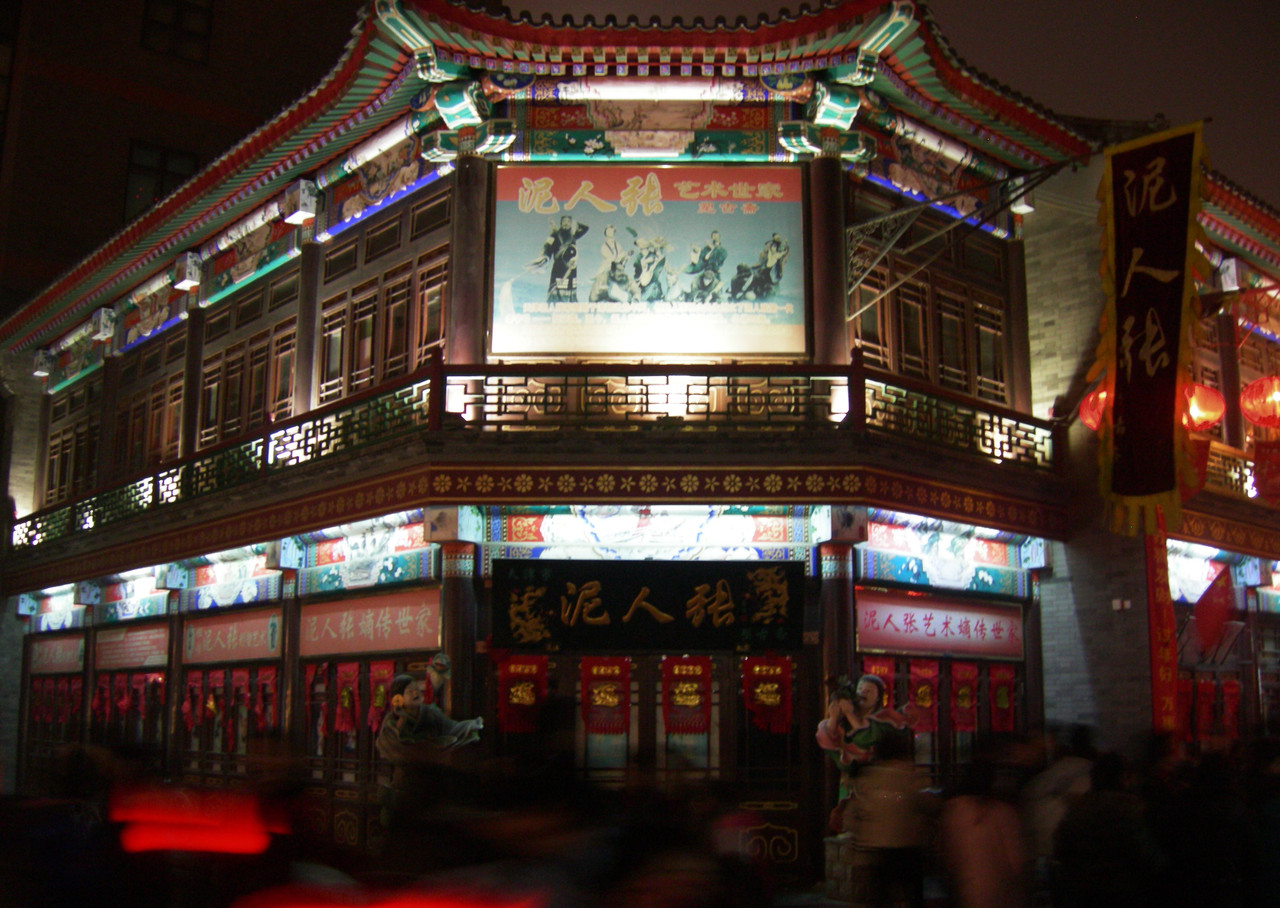 街上大致經(jīng)營3類商品:①文物、古玩及古家具,如文房四寶、古舊書籍、傳統(tǒng)年畫、珠寶玉石、古式家什等。②民間傳統(tǒng)商品,如娃娃樂、泥人張的彩塑、有300多年歷史的楊柳青年畫、風(fēng)箏魏的風(fēng)箏、刻磚劉的磚刻、修竹齋的劉海空竹、景德鎮(zhèn)的瓷器、蘇州的刺繡等。③酒樓、茶莊、飯館和娛樂場。天后宮前廣場和露天戲臺經(jīng)常演出地方戲劇、民間曲藝。