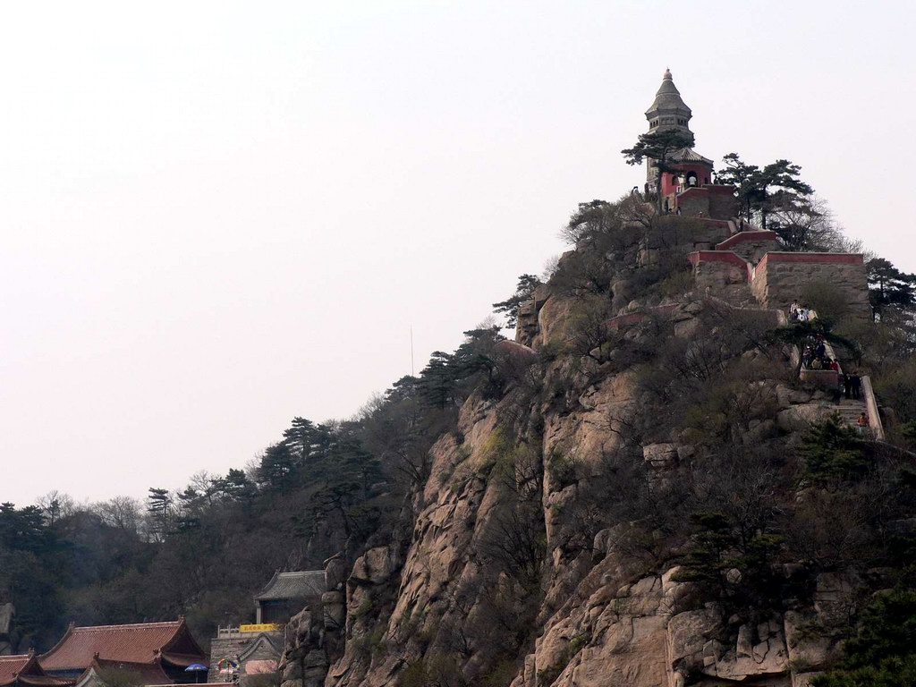 登臨上盤,這里松木蒼翠,林翳蔽天,而且長勢怪異,有的似臥龍、飛鷹,有的像鳳翅、傘蓋,難怪有“上盤松”之說。攀上盤山頂峰掛月峰,真如刻在石壁上的杜甫名句,給人“一覽眾山小”的感受。峰上有座建于唐代的定光佛舍利塔,塔高12米,傳說每年除夕,塔上便有佛光閃射。