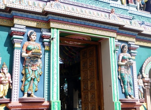 這座南印度風(fēng)格的神廟建于1859年,并在1983年重建。它的獨特之處在于屋頂鑲嵌的48塊玻璃板,它們的角度剛好能讓陽光從各方向照射進(jìn)來。丹達(dá)烏他帕尼興都廟歷來最熱鬧的時候是在大寶森節(jié)和九霄節(jié)。