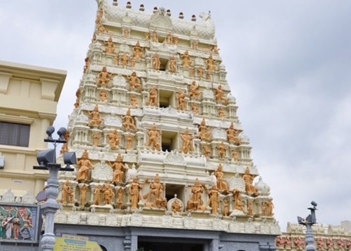 建于19世紀(jì)中旬的圣帕加維那雅加廟于2003年重建。值得注意的是它那有著印度南部科羅曼代爾海岸Chola建筑風(fēng)格的Rajagopuram門塔。Cholas人是印度歷史上最偉大的寺廟建筑家。圣帕加維那雅加廟最獨(dú)特的地方在于大廳里的四根花崗巖石柱。每根石柱上都有八個雕像,加起來便組成了維納雅加王(Lord Vinayagar)的32種不同形象。