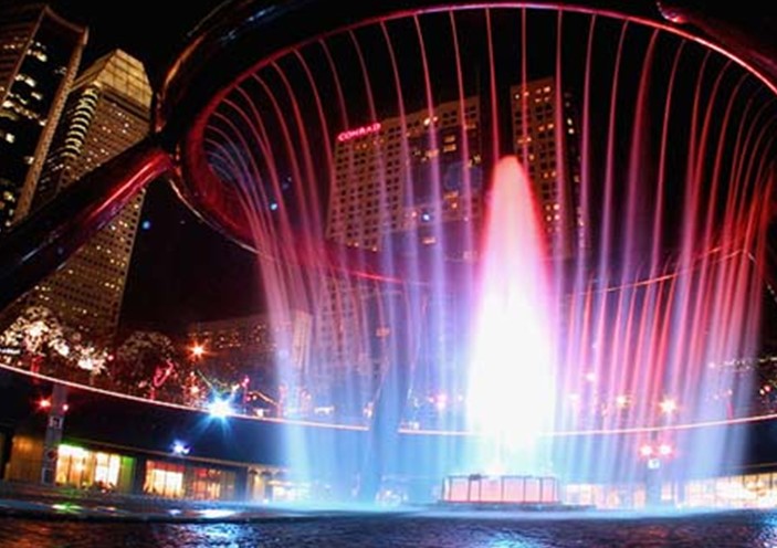 財(cái)富噴泉是新加坡的標(biāo)志建筑之一,位于金融中心,只在特定的時(shí)間開放,噴泉周圍地面有12生肖圖案,據(jù)說繞著噴泉走三圈會(huì)帶來財(cái)氣。白天「財(cái)富之泉」不噴水時(shí),就會(huì)開放給民眾免費(fèi)進(jìn)到噴泉中央?yún)⒂^。這座噴泉耗資新加坡幣600萬元建成。每晚8點(diǎn)開始,『財(cái)富之泉』均有一場多媒體噴泉秀,有興趣的民眾不妨前往觀賞,當(dāng)燈光與水幕交織出的神秘光彩煞是好看!