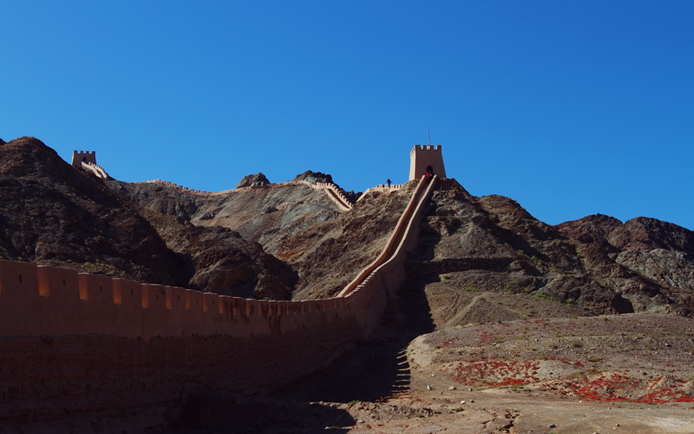 位于嘉峪關關城北8公里處石關峽口北側的黑山北坡。明嘉靖十八年(1539年),為了加強嘉峪關[1]的防御,肅州兵備道李涵在暗壁以外,峽南側的山頭上開始,監筑了一條長15公里的片石夾土墻。工程完成于嘉靖十九年(1540年),使關城防御更加嚴密,古稱“斷壁長城”。 因城墻自山上陡跌而下,在山脊上 似長城倒掛,鐵壁懸空,從山上陡跌而下,封鎖了石關峽口,俗稱“懸壁長城”。 懸壁長城原墻現只余一截,底闊4米,上寬2米,高0.5-6米不等。片石層厚10-15厘米,土層厚10-12厘米?,F存750米長城經1987年重修,其中有231米城墻懸掛于高150米,傾斜度為45’的山脊上,高達6米,片石、土層厚度如舊。在墻頭增筑垛墻和宇墻,首尾各添筑一墩臺,版權所有山東聊城聊之旅國際旅行社有限公司,轉載必究!在首墩和山坡上筑臺階式饅道。游人拾級而上,平坦處如履平地,險峻處如攀絕壁。頗似北京八達嶺長城。有詩贊云:“萬里長城萬里關,迭障黑山暗壁懸”。