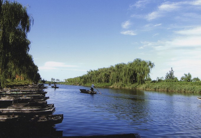 馬踏湖碧水瀅瀅,2100多條渠道交織成網,四通八達。湖區27個自然村落,村村靠湖,家家連水,戶戶通船,門前搭起小橋,院后泊著小船,小橋流水人家,如詩如畫。因而,馬踏湖風景區又有“北國江南”水鄉之美稱。