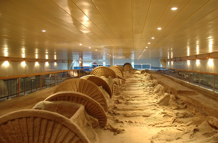 春秋殉馬坑殉戰(zhàn)車10輛,馬32匹,規(guī)模之大,配套之齊全,馬飾之精美,為當(dāng)代全國(guó)之冠,列全國(guó)十大考古發(fā)現(xiàn)之一。古車陳列展廳陳列后李車馬坑出土的各類車和臨淄地區(qū)出土的古代車的復(fù)原車,直至全國(guó)出土的各類古代車復(fù)原車。集中國(guó)古車研究成果之大成,薈華夏歷代車乘珍品之精粹,充分展示了我國(guó)車乘的悠久歷史和造車技術(shù)在世界車輛發(fā)展史上的領(lǐng)先地位.