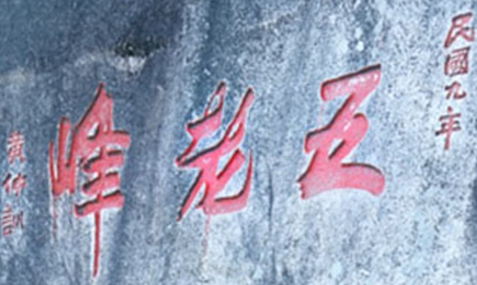 若從藏經閣后面登階,山坡上鐫刻著"五老峰"三字,迎面巨石上刻著特大的"佛"字,高4米多,寬3米多,筆劃豐滿有力,粗獷豪放,似乎大筆一揮而就。這就是清光緒年間(1905年)振慧和尚所書。它吸引了許多善男信女來此燒香磕頭。