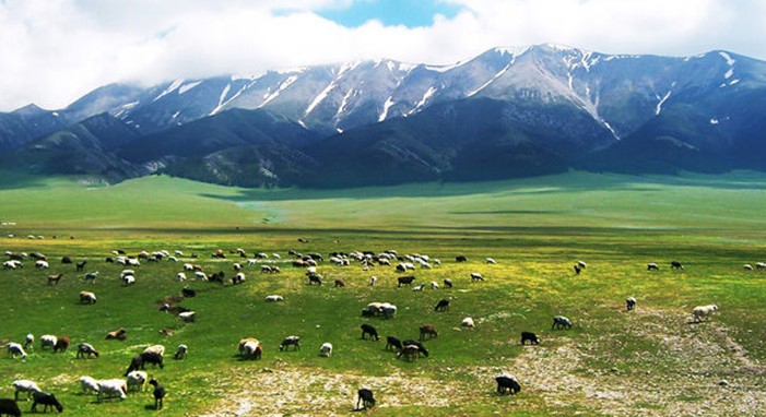 巴里坤是大草原。但巴里坤草原不象內蒙古的草原那樣一望無際,可以看到草天相接的地平線。而巴里坤是盆地,極目遠望,四周與藍天相接的是連綿不斷的山巔。這些山都屬于東天山。版權所有山東聊城聊之旅國際旅行社有限公司,轉載必究!特別是南山尤為高大雄偉,山頂有終年不化的積雪,山腰是四季常青的林帶。山頂積雪融化以后,有的順著山溝流了下來,不到山口就不見了蹤影,全都鉆到地下去了。而有的則就地滲入巖縫。俗話說,“山有多高,有多高”確實不假。因為在山上到處可以見到泊泊的山泉。夏天,水草豐美的高山草甸草場則是牲畜避暑的絕好去處。為數不多的幾條大溝里的水可以流出溝口,便成了山前沖擊扇平原上農田的灌溉用水。在沖擊扇平原的下面,就是地下水溢出帶了。巴里坤盆地不大,南北也就是三四十公里。因此南北兩山的地下水溢出帶集中在盆地中間,有的地方也有十幾公里寬,這里無數泉眼的泉水竟然匯聚出一條條小河,自東向西流入到巴里坤湖。這十幾里寬的地方植被很好,形成了很好的草甸。古詩《疏勒歌》中的“天蒼蒼,野茫茫,風吹草低見牛羊”,據說就寫的是巴里坤。古人也稱這里是“甘露川”。現在人們干脆就叫“草湖”:草,牧草,湖,水也,既有草有水的地方。草湖與巴里坤人的生存息息相關。