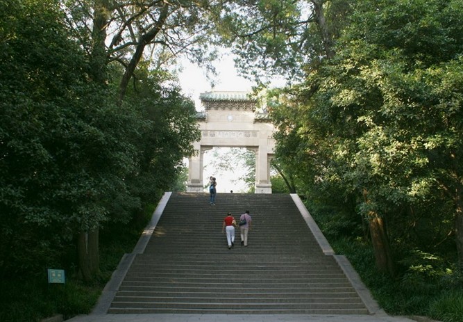 明清兩代,那里為規(guī)模宏大的東南名剎靈谷寺,后毀于戰(zhàn)火。民國時期在這里建陣亡將士公墓,新增正門、牌坊、松風閣、靈谷塔等,至今保存完好。現公園內的靈谷寺、原為同治六年(1867年)建的龍神廟,規(guī)模雖小,卻藏有玄奘法師頂骨,極為珍貴。古靈谷寺保留下來的還有供奉無量壽佛的無量殿,因不施寸木也無梁椽,俗稱無梁殿,民國時期改作祭堂,現辟為辛亥名人蠟像館。靈谷深松處的譚延闿墓,墓前祭臺為北京圓明園的原物。