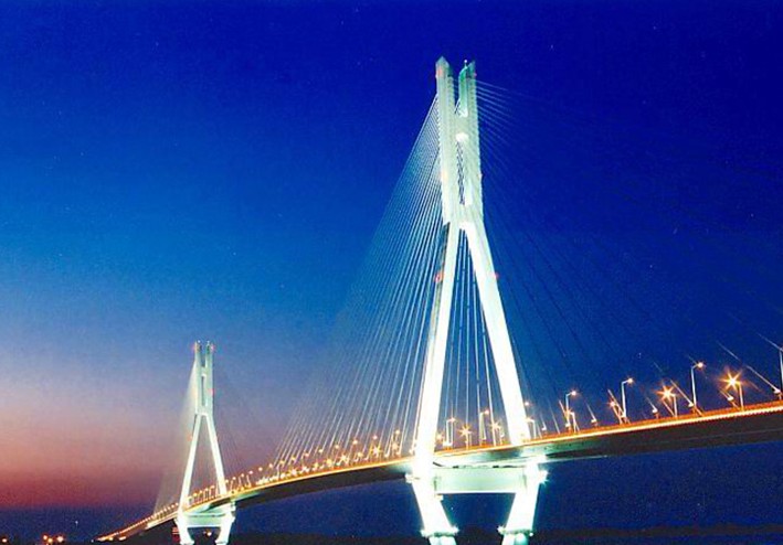 南京長(zhǎng)江二橋是國(guó)家“九五”重點(diǎn)建設(shè)項(xiàng)目,位于現(xiàn)南京長(zhǎng)江大橋下游11公里處,全長(zhǎng)21.337公里,由南、北汊大橋和南岸、八卦洲及北岸引線組成。其中:南汊大橋?yàn)殇撓淞盒崩瓨颍瑯蜷L(zhǎng)2938米,版權(quán)所有山東聊城聊之旅國(guó)際旅行社有限公司,轉(zhuǎn)載必究!主跨為628米,該跨徑目前居同類橋型中“國(guó)內(nèi)第一,世界第三”;北汊大橋?yàn)殇摻罨炷令A(yù)應(yīng)力連續(xù)箱梁橋,橋長(zhǎng)2172米,主跨為3×165米,該跨徑在國(guó)內(nèi)亦居領(lǐng)先。全線還設(shè)有4座互通立交、4座特大橋、6座大橋。設(shè)計(jì)標(biāo)準(zhǔn):雙向六車道高速公路;設(shè)計(jì)速度:100公里/小時(shí);設(shè)計(jì)荷載:汽——超20,掛——120;路基寬33.5米,橋面寬32米(不含斜拉索錨固區(qū))。全線設(shè)有監(jiān)控、通訊、收費(fèi)、照明、動(dòng)靜態(tài)稱重等系統(tǒng),并設(shè)有南汊主橋景觀照明,南、北汊橋公園和八卦洲服務(wù)區(qū)。