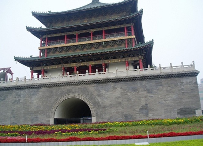 南京鼓樓占地面積9100平方米,高聳于鼓樓崗之上,北京東路、北京西路、中山路、中山北路、中央路五條主干道在此交匯,歷來就是南京的標志性建筑之一。鼓樓分上下兩層,下層建成城闕樣式,高達9米,紅墻巍峙,飛檐迎風,中間有券門三道,貫通前后,上有“暢觀閣”題額。上層建筑,分為中殿和東西兩殿,滴水直落臺座之外。