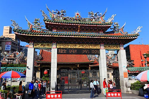 艋舺龍山寺主祀觀世音菩薩,配祀天上圣母、文昌帝君、關圣帝君等諸神佛,相應靈驗,信徒廣眾,香火鼎盛。