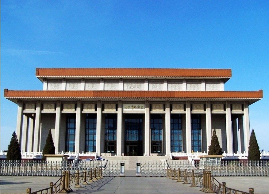 毛主席紀念堂是為紀念領袖毛澤東而建造的,位于天安門廣場, 人民英雄紀念碑南面。坐落在原中華門舊址,1976年11月24日按照中國共產黨中央委員會的決議,毛主席紀念堂舉行奠基儀式在天安門廣場舉行,華國鋒主席在儀式上發表了講話。1977年5月24日落成,占地57000多平方米,總建筑面積為28000平方米。主體呈正方形,外有44根福建黃色花崗石建筑的明柱,柱間裝有廣州石灣花飾陶板,通體青島花崗石貼面。屋頂有兩層玻璃飛檐,檐間鑲葵花浮雕。基座有兩層平臺,臺幫全部用四川大渡河旁的棗紅色花崗石砌成,四周環以房山漢白玉萬年青花飾欄桿。