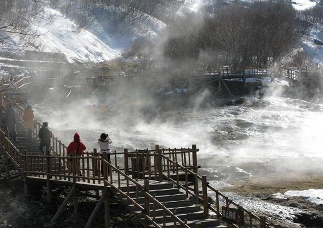 近幾年來,長白山冬季冰雪旅游發(fā)展很快,而露天溫泉浴是最讓人們眼界大開的項目,泉外冰天雪地、冷風習習,水中熱氣繚繞、笑聲陣陣,一冷一熱對比分明,真是人生難得的奇妙經(jīng)歷。