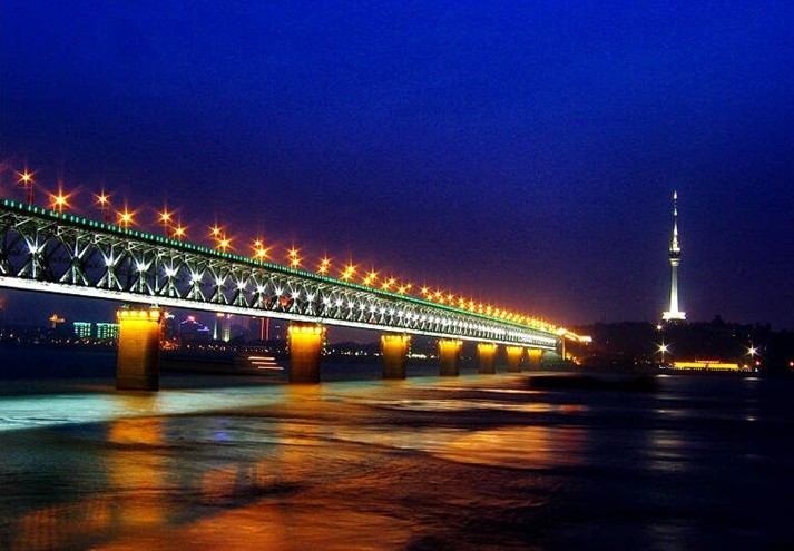 人行道內(nèi)緣后來增設(shè)了鋼筋混凝土結(jié)構(gòu)的防撞護(hù)欄。每隔32米矗立一對(duì)燈柱,兼作無軌電車供電線路的支架。入夜成串的橋燈遠(yuǎn)望如過江銀龍,壯麗奇絕。大橋管柱基礎(chǔ)、墩臺(tái)、梁體及鐵路聯(lián)絡(luò)線由鐵道部大橋工程局施工,公路橋橋面及兩岸引道由武漢市建設(shè)局協(xié)同施工。大橋工程耗用混凝土和鋼筋混凝土12.63萬立方米;版權(quán)所有山東聊城聊之旅國(guó)際旅行社有限公司,轉(zhuǎn)載必究!安裝鋼梁24 372噸;打入鋼筋混凝土管樁3 000根,總長(zhǎng)62.5公里;直徑1.55米的鋼筋混凝土管柱224根,總長(zhǎng)3 752米。總結(jié)算投資1.38億元,大橋主體工程投資7 189萬元。公路橋橋面由武漢市建設(shè)局負(fù)責(zé)維修管理,其余均由鄭州鐵路局武漢長(zhǎng)江大橋橋工處維修管理。