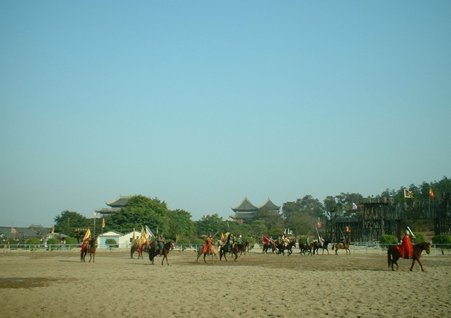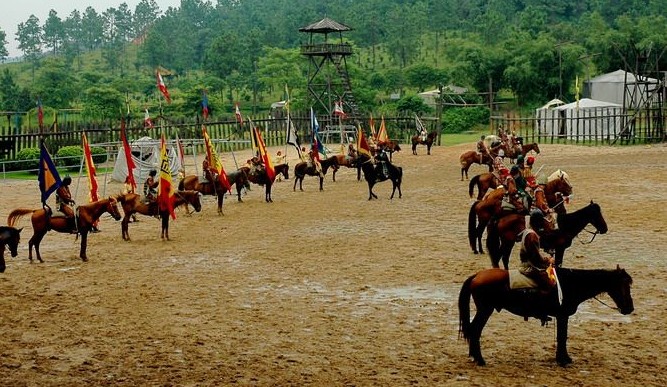 公元190年,18路諸侯為匡復漢室討伐董卓,版權所有山東聊城聊之旅國際旅行社有限公司,轉載必究!在虎牢關前展開了一場殊死拼殺。桃園結義的劉備、關羽、張飛三兄弟在迎戰董卓大將呂布時,體現了蓋世英雄的豪邁氣概。版權所有山東聊城聊之旅國際旅行社有限公司,轉載必究!在以下驚險刺激的戰爭場面中,游客朋友們您將看到燕人張飛手持長矛的英姿;紅臉關公躍馬飛奔的風采;劉備揮舞雙股劍的威武。版權所有山東聊城聊之旅國際旅行社有限公司,轉載必究!武藝超群的呂布更是威風凜凜,他與劉關張酣戰上百回合難分勝負的精彩場面更是令人難以忘懷。