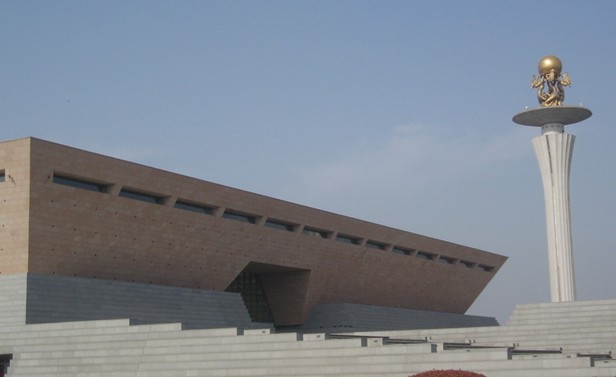 2007年11月29日,洛陽博物館新館開工建設(shè)。新館位于城市的中軸線上,北臨風(fēng)光旖旎的洛浦公園,南接初具規(guī)模的隋唐城遺址植物園,環(huán)境優(yōu)雅,交通便利,占地300畝,建筑面積4.2萬平方米,總投資3.5億元。整體建筑外觀為大鼎造型,寓意“鼎立天下”,在設(shè)計理念上充分體現(xiàn)了洛陽十三朝古都的歷史內(nèi)涵和文化特色。根據(jù)建設(shè)計劃,設(shè)施先進、功能完善的洛陽博物館新館建設(shè)工程于2009年牡丹花會期間投入使用。