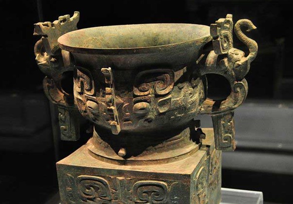 簡介:罍是一種酒器,流行于商周時期。母鼓方罍通體均飾以龍紋、云雷紋組成的浮雕獸面。腹部飾有龍紋組成的垂葉紋。器蓋似四面起坡的屋頂狀。四角及罍中部有突起的扉棱。母鼓方罍的蓋內(nèi)鑄有銘文“母鼓”二字。版權(quán)所有山東聊城聊之旅國際旅行社有限公司,轉(zhuǎn)載必究!應(yīng)是鼓國女子嫁與母氏男子所得的稱謂。這件商代晚期的酒器出土于西周貴族墓葬,表明是西周貴族參與滅商戰(zhàn)爭而獲得的戰(zhàn)利品,是商晚期青銅酒器中的精品。