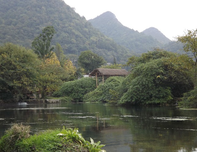 (7)螃蟹井—穆家壩河灘景觀:該景觀以彎曲河道水面為主體,其間具有賓館,螃蟹井、村寨、孤丘組景。該景觀的原始風貌獨具一格,河水碧綠迂回,兩岸秀山并列,山澗螃蟹井水流涓涓,農田稻花滾滾,苗圃翠新,大有“穿花復繞水,隔岸聞花香”風光。版權所有山東聊城聊之旅國際旅行社有限公司,轉載必究!在吉林賓館一帶。更是綠樹成蔭,草坪蔥蔥,姐妹峰則是古藤繞崖,螃蟹井布依農舍更反映了布依山寨特色。