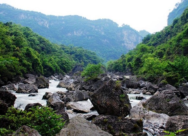 景區內植被茂密,覆蓋度高,植被類型較豐富,大部分為亞熱帶原生性較1強的次生林。在河谷兩側斜坡上有原生性較強的石灰巖山地常綠、落葉闊葉混交林和竹林;在河流周期性淹沒的河漫灘上以及河流兩岸水邊,有以窄葉蚊母樹、長柄竹葉榕、河灘冬青及二翅六道木為優勢的河灘灌叢;在河谷以上低中山黃壤分布地區,有以馬尾松林為優勢的人工針葉林。風景區內植物種類豐富,有維管束植物414種,分別隸屬275屬116科。其中有不少種類的珍稀植物,如國家一級重點保護植物紅豆杉、國家二級重點保護植物櫸樹、香果樹、木莢紅豆樹、三尖杉、銀杏等。