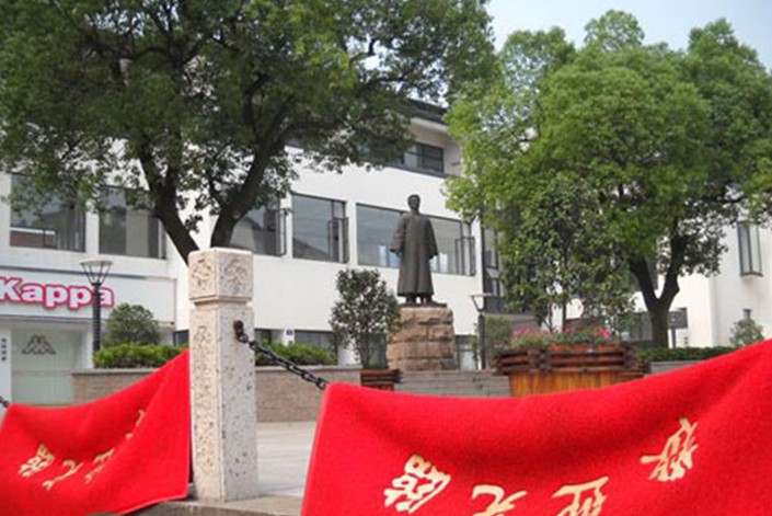 魯迅文化廣場上臺階層層疊疊,紅花綠葉相間,草木蘢蔥。整個廣場的路面鋪著青石板,突出了紹興的傳統風貌。廣場府河一線還構筑有水鄉典型的河埠場景,府河水面上停泊著兩只精致的烏篷船。廣場周圍的附屬建筑一律仿照紹興民居的傳統風格,白墻黑瓦,素靜潔凈,所不同的是采用了現代建筑材料,在建筑物的外形上融入了一些現代審美意識的構圖,從而更富時代氣息。廣場氣氛既莊嚴凝重,又活潑歡快,體現出紀念性廣場與文化休憩場所的共性。魯迅文化廣場的東側,版權所有山東聊城聊之旅國際旅行社有限公司,轉載必究!有一塊高1.12米、長3.30米的花崗石巨碑,鑲嵌在方石砌成的堅壁之中。碑額題名為《魯迅銅像贈款名錄》,是由“紹興市魯迅銅像籌建委員會”敬立。碑上刻著“單位千元以上、個人百元以上”贈款者的姓名。上面一排排來自四面八方、國內海外的名字,昭示著一個無可否認的事實:熱愛魯迅、崇敬魯迅的人們遍布天南海北。魯迅文化廣場于1991年紀念魯迅誕生110周年之際正式竣工開放。