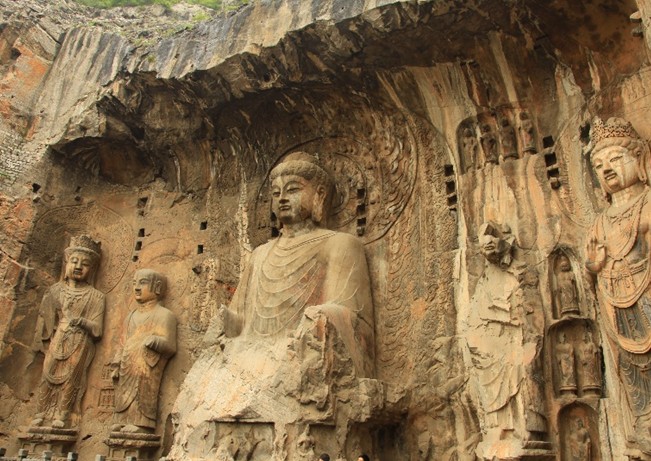 奉先寺是龍門(mén)石窟中規(guī)模最大、最具有代表性的露天佛龕,形態(tài)各異、刻畫(huà)傳神的造像顯示了盛唐雕塑藝術(shù)的高度成就,成為石雕藝術(shù)史上的奇觀。