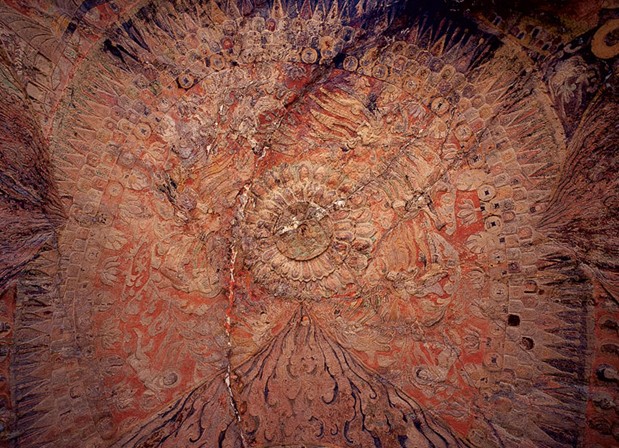 景明元年至正光四年(公元500-523)營(yíng)造,洞窟平面呈馬蹄形,穹隆頂,深12米,寬10.90米,高9.3米,正壁雕主佛釋迦牟尼坐像及二弟子、二菩薩,南北壁均一立佛二菩薩。佛、菩薩體態(tài)修長(zhǎng),表情溫和,神采飄逸,是北魏晚期風(fēng)行的“秀骨輕像”的典型代表。地面刻蓮花圖案裝飾,示意蓮花寶池。窟頂中間浮雕一朵盛開的大蓮花。版權(quán)所有山東聊城聊之旅國(guó)際旅行社有限公司,轉(zhuǎn)載必究!周圍有八身伎樂(lè)和兩身供養(yǎng)天,加之流蘇帷幔構(gòu)成一蓮花寶蓋。前壁有維摩詰變相、太子舍身飼虎圖,須達(dá)那太子施舍圖和皇后、皇帝禮佛圖(已被盜走)等大型浮雕圖像及十神王像。1978年為保護(hù)洞窟雕刻拆除磚卷門洞。使鮮為人知的四頭四臂、一頭四臂護(hù)法天重見(jiàn)天日。