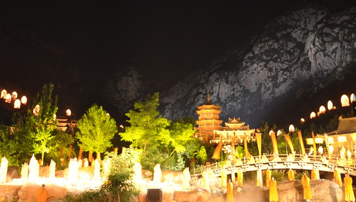 千米大佛頌和諧。在演出尾聲部分,版權所有山東聊城聊之旅國際旅行社有限公司,轉載必究!主創人員設計了一個特殊的章節:用燈光把作為演出背景的少室山連天峰打成一尊大佛,由于距離遠、面積大、山體不平整等原因,觀眾一直無緣見到這尊“大佛”,如今演出方斥資300萬元進行科研攻關,使大佛特效呈現。