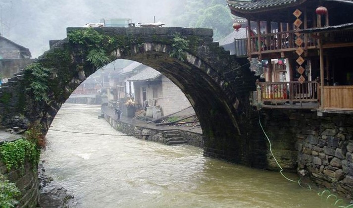德夯苗寨的民居是清一色的青瓦木板屋,幾條縱橫交錯的青石板路編織著百余戶人家。九龍溪穿寨而過,一座古樸典雅的石拱橋橫跨山溪。每年“接龍”這天,橋上橋下彩旗飄揚,人群熙攘,嗩吶鑼鼓喧天。來自四鄉八寨的人們身著節日盛裝,簇擁著“龍女”,組成一支浩浩蕩蕩的接龍隊伍登橋而過,去寨旁的玉泉門“接龍”。象這樣大型的苗家傳統活動,還有“苗鼓節”“清明歌會”、“趕秋”、“百獅會”等,版權所有山東聊城聊之旅國際旅行社有限公司,轉載必究!令你有常來常新之感。活動之后,你可應邀去苗家做客,感受苗族人民的生活習俗,品嘗苗家風味的陰米茶、五谷飯、酸魚、酸肉及包谷澆酒。還可應邀加簧火晚會,觀賞苗家姑娘小伙為你表演“跳鼓”、“接龍”、“尤拳“等傳統文藝節目,同他們共舞同歡。每年9月,還可來這里觀看一年一度的國際攀巖比賽。