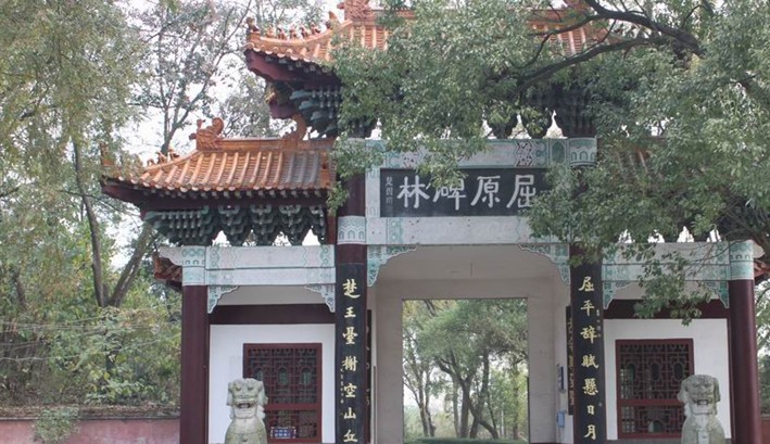 屈原碑林是汨羅市政府近年在屈原風景區進行的一項規模浩大、氣勢雄偉、結構恢宏的園林式工程。主體結構由離騷閣、天問壇、九歌臺、九章館、招魂堂等五個部分組成。以屈原憂國憂民、上下求索的愛國主義精神為主題,將屈原的全部作品串成一個整體。五個建筑均采用磚木結構,上蓋黃色琉璃瓦,下輔白色花崗石地面,各自獨立,又以廊亭銜接,交映相輝。