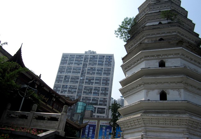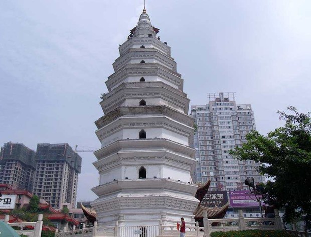 報(bào)恩塔,俗稱“白塔”,四川省文物保護(hù)單位,位于瀘州城區(qū)。建于南宋紹興十八年(1148),明弘治年間、清光緒四年、1985年三次維修。塔坐西向東,磚石結(jié)構(gòu),雙檐七級(jí)樓閣式,通高33.2米。塔身呈八邊形,層層上收,107級(jí)踏道經(jīng)塔心盤旋至頂,塔內(nèi)90龕256尊深浮雕石刻造像,人物線條流暢,栩栩如生。塔基為八邊形,邊長4.1米。