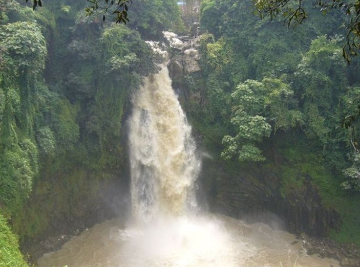 發(fā)源于騰沖縣東北部的大盈江,屬于伊洛瓦底江水系,沿途眾流匯合,水量漸豐。位于騰沖縣城以西1公里,此處四周是懸崖峭壁,大盈江水流經(jīng)此處,從30多米的高巖上跌落,響聲雷動,水花四濺,形成了“不用弓彈花自散”的壯麗景觀,據(jù)說在陽光下常現(xiàn)出七色彩虹,非常漂亮。大盈江從北向南貫穿騰沖壩子,在流經(jīng)云南騰沖縣城西1千米的地面時,遇到1個巨大的斷層崖。