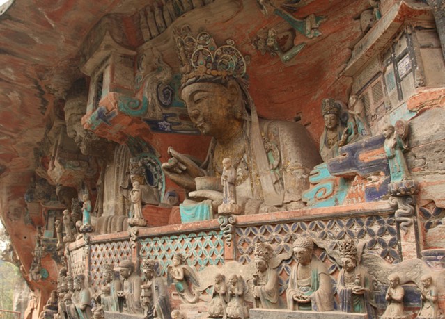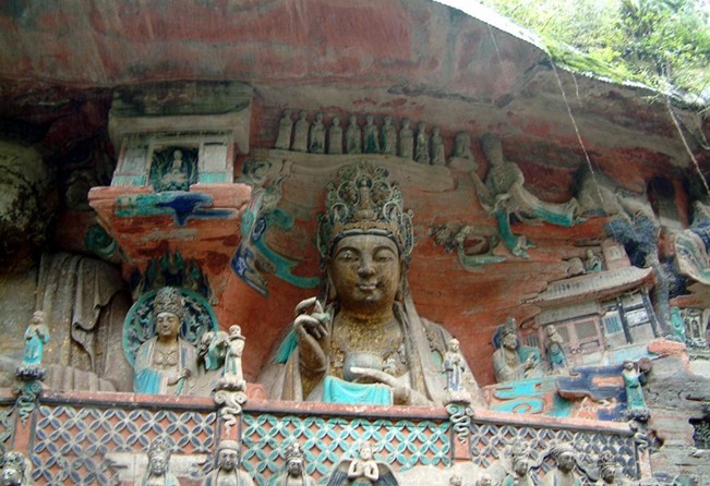 重慶市的大足石刻以其規模宏大、雕刻精美、題材多樣、內涵豐富和保存完整而著稱于世。它集中國佛教、道教、儒家“三教”造像藝術的精華,以鮮明的民族化和生活化特色,成為中國石窟藝術中一顆璀璨的明珠。它以大量的實物形象和文字史料,從不同側面展示了9世紀末至13世紀中葉中國石刻藝術的風格和民間宗教信仰的發展變化,對中國石刻藝術的創新與發展做出了重要貢獻,具有前代石窟不可替代的歷史、藝術和科學價值。許多歐洲人、尤其是法國人,對大足石刻寵愛倍加。