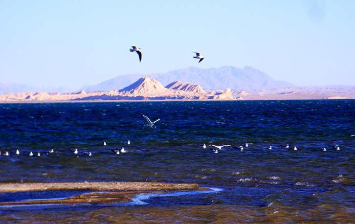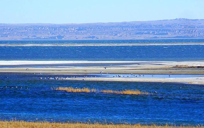 托素,也是蒙古語(yǔ),意為“酥油”。托素湖的面積比可魯克湖大3倍還多,約180多平方公里,是一個(gè)典型的高原內(nèi)陸湖。托素湖周?chē)且煌麩o(wú)際的戈壁灘。