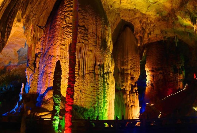龍王洞自開發以來,由于投資少,版權所有山東聊城聊之旅國際旅行社有限公司,轉載必究!洞類開發程度不夠,各項硬件基礎設施落后,經營十分不景氣,為讓這一璀璨明珠展放光彩,塑造張家界精品旅游景點,百龍旅游張家界集團于2003年8月租賃龍王洞,成立張家界萬龍旅游交通開發有限公司,投巨資對龍王洞進行深度開發,現已建造了頗具少數民族風格的集辦公、購物、就餐、休閑于一體的大樓,正在籌建的龍王洞內觀景游覽線由原2公里增至現今的3.5公里,并請專家設計,打造了世界一流的洞內燈光,把以前鮮為人知的絕妙景點都展現在游人面前。現已探知:龍王洞總長約30公里,平均高度50米,寬80米,有58個廳臺,28條石走廊,15處珍珠瀑布,3條地下陰河,湖泊2個,水花池45處,洞中石筍、石鐘乳、石幔、石花遍布,琳瑯滿目。更有“天下第一柱”之稱的龍王寶柱,頂天立地、氣勢磅礴,令人嘆為觀止。