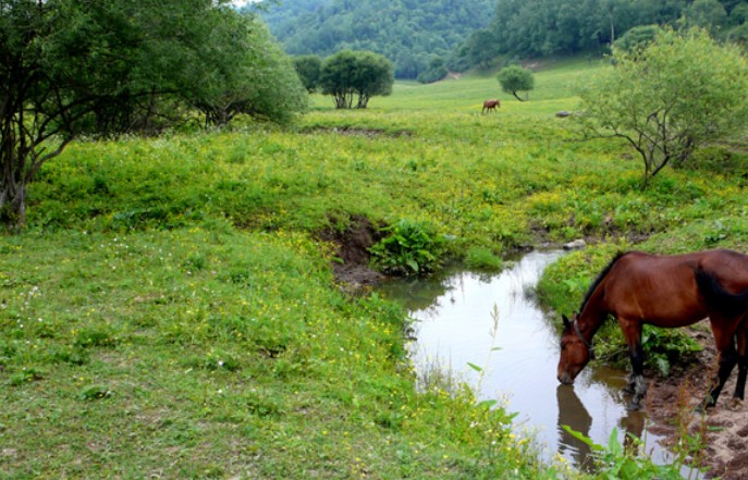 享有“小天山”之美譽。這里,地貌與中歐阿爾卑斯山相似,幽澗水澤兼具,草原森林 相間,地勢廣闊,水肥草美,牧馬成群,景色秀麗。氣候受垂直地帶性地理條件的影響,冬春無界,夏秋相連,有“關山六月寒凝霜” 的寫照。自古以秦非子養馬而聞名于世,為陜西最大的林牧區,我國內陸中東部地區最大和唯一的天然草原,