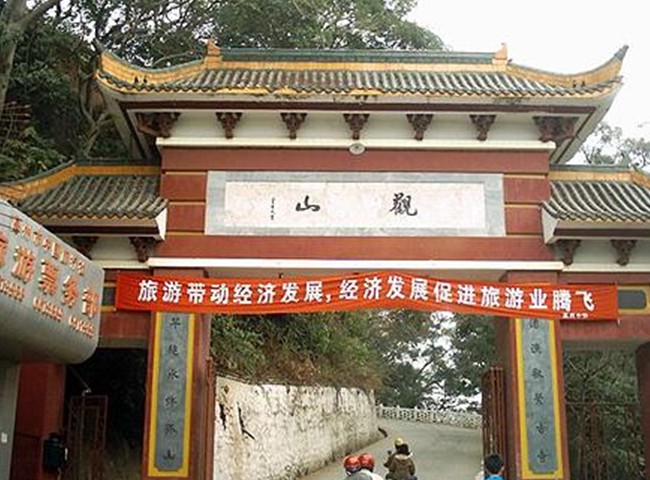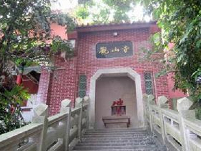 觀山寺群位于高州市之西的觀山上,觀山東臨鑒江,南對南宮嶺,山清水秀,風景迷人。明代以來,這里先后建起了觀山寺、玉泉寺、呂仙殿、潘仙殿、報德祠等寺廟建筑群。民國期間,又開辟了中山公園,建有中山亭、若虛亭、茂植亭、詠風亭、襟江亭、曠怡亭和斷碑亭等建筑,使觀山增添了不少色彩。
