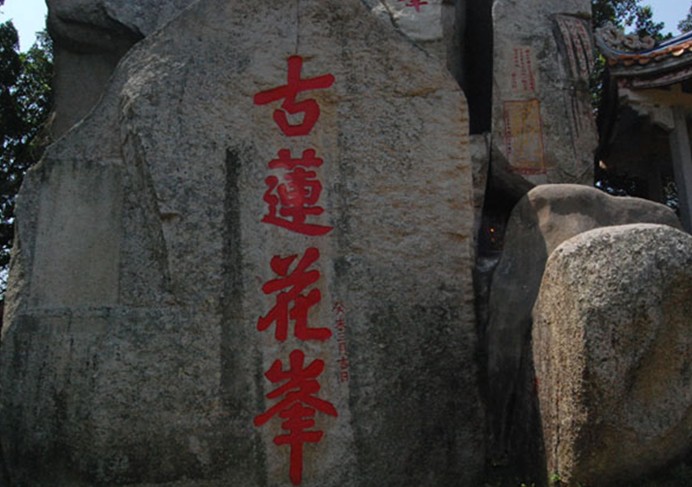 公元一二七八年,南宋民族英雄文天祥率領(lǐng)義軍,追蹤十歲小皇帝趙炳至潮陽蓮花峰,在此登峰望帝,眺望茫茫大海,極目尋望帝舟蹤影,帝舟片影無蹤。山峰是由幾片縱裂的花崗巖石拱圍拼湊而成,從陸上遠(yuǎn)眺儼然若一朵含苞待放的蓮花,從海上觀之,則仿佛是一朵出水芙蓉,故文天祥將該峰命名為“蓮花峰”并刻石。還有許多名人石刻,其中有黑旗軍將領(lǐng)劉永福的草書“虎”字、書法家于右任和劉海粟等的題字等。現(xiàn)代作家老舍也在這里題詩曰:“遙憐信國此峰頭,水黑云寒望帝舟;今日紅旗明碧海,神州兒女競風(fēng)流。”