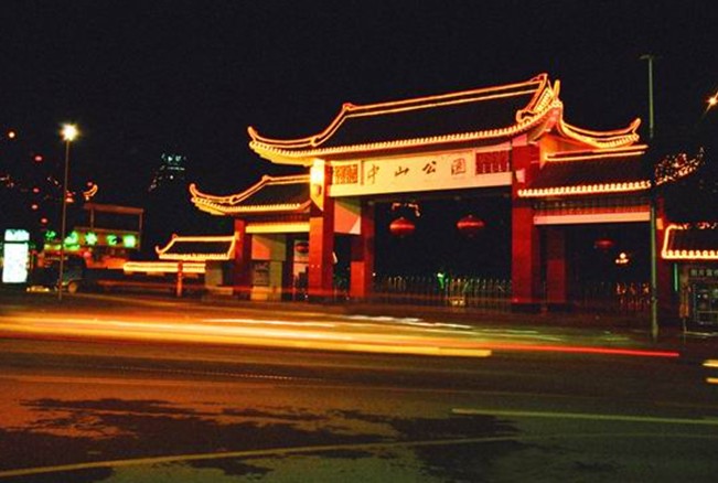 韶關(guān)市中山公園位于市中心區(qū),湞江、武江、北江交匯處,總面積約12公頃。公園以中心大道為主軸線,形成了近三萬平方米開闊的公園城市廣場。主軸線上建有古典大屋頂琉璃瓦大門,孫中山雕像,音樂噴泉及文藝演出舞臺等建筑。廣場最高游人容量可達2萬多人。公園沿周邊規(guī)劃了兒童活動區(qū)、安靜休息區(qū)、盆景園、竹園以及水景區(qū)五個小區(qū)。