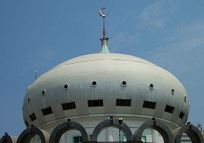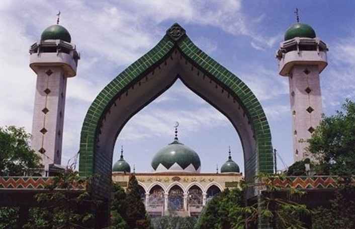 中國伊斯蘭教清真寺。位于寧夏回族自治區銀川市南關。據傳原寺始建于明朝末葉,系一中國古典式建筑群。規模宏大,布局嚴整。禮拜大殿有前廈后室。殿堂門窗為紅松木,雕刻工藝精美。南北廂房布置得體。“文化大革命”中被拆毀。1981年8月重建。新建寺面積為2074平方米,分上下兩層。禮拜大殿設于樓上,呈正方形,長寬各21米,宏偉壯麗。中部有綠色瓷磚飾面的4根方柱,殿頂為直徑9.5米的巨型穹頂。穹頂底部與方柱之間為一段圓柱體的鼓座,上開24扇高窗,寬敞明亮,視野開闊。穹頂正中高懸月形燈,跨地面22米,高聳入云。下層為小禮拜殿、男女沐浴室、會客室、宿舍等。其間有回廊相連,自成一體。整個建筑典雅華美,莊重宏偉,呈現出典型的阿拉伯建筑特色。
