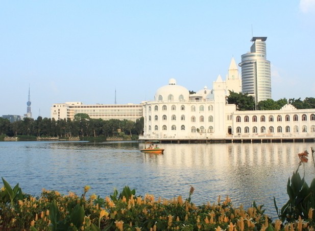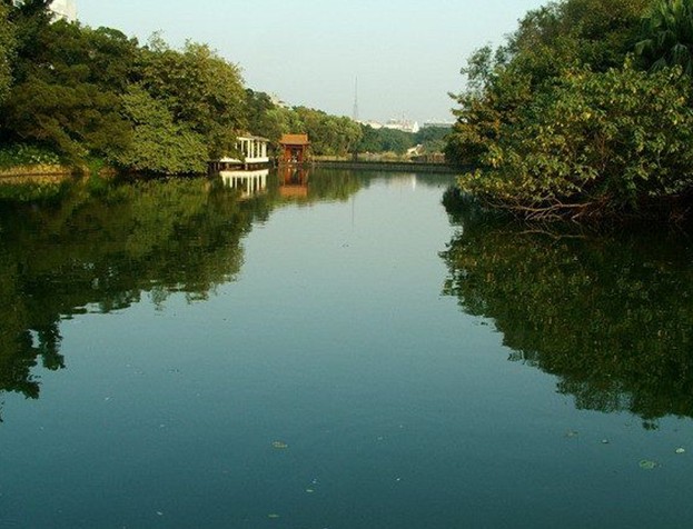 流花湖公園占地54.43公頃,其中湖水面積占60%,綠化占陸地面積88%。流花湖公園現址相傳是晉代芝蘭湖,后成為菜田。1958年市政府為疏導街道水患,組織全市人民義務勞動,建成流花湖等四個人工湖,后辟為公園,除原有蓄水防洪功能外,還是集游覽、娛樂、休憩功能為一體的大型綜合性公園。公園以棕櫚植物、榕屬植物、開花灌木及開闊的草坪、湖面與輕巧通透的嶺南建(構)筑物相互配合,形成具有強烈南亞熱帶特色的自然風光。