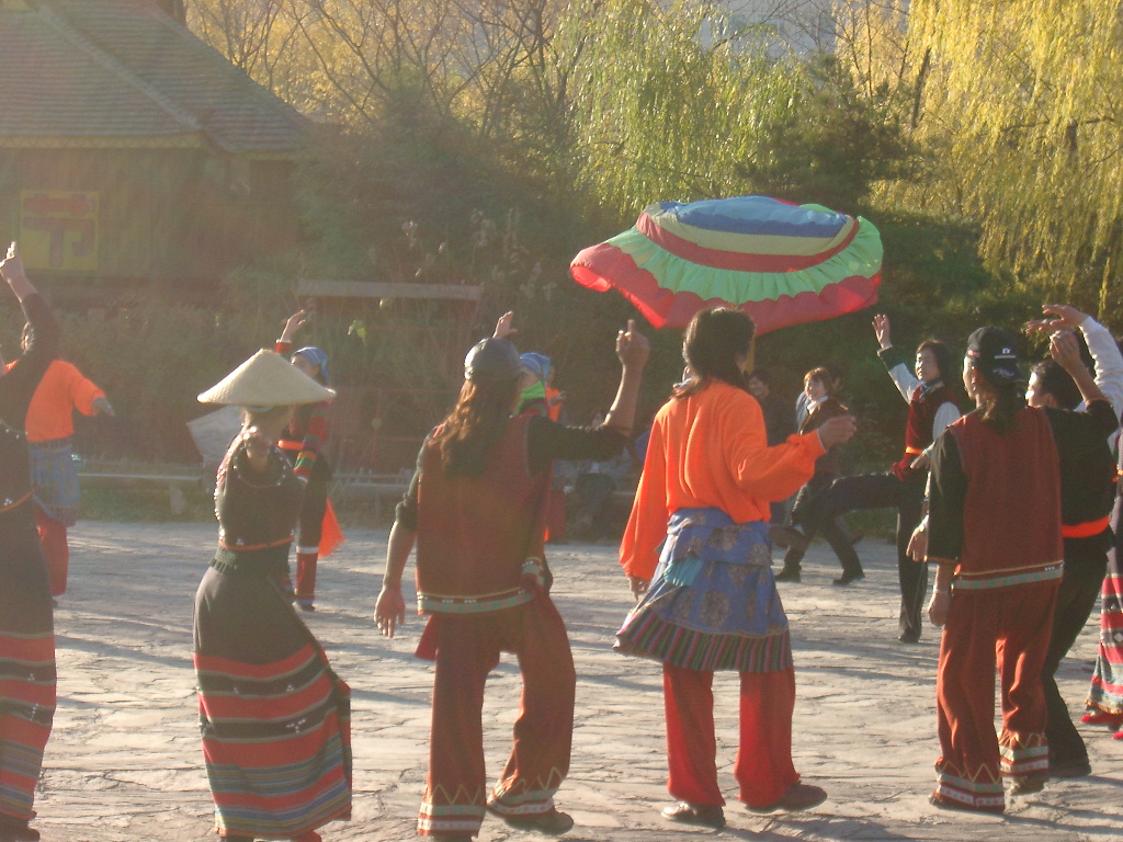 為了使民族體育運(yùn)動(dòng)以大眾化的形式走向社會(huì),我園的民族藝術(shù)團(tuán)編排了三套民族韻律操,融合了我國8個(gè)民族(藏、蒙、納西、土家、白、彝、佤、摩梭)的舞蹈動(dòng)作,易學(xué)易練、動(dòng)作優(yōu)美。每天清晨,在我園的民族團(tuán)結(jié)廣場,版權(quán)所有聊城聊之旅旅行社有限公司,轉(zhuǎn)載必究!都有160名少數(shù)民族演員穿著56個(gè)民族的民族服裝進(jìn)行集體表演,吸引過往行人和游人的注意。我們還把這三套韻律操推廣到社區(qū)和民族小學(xué),希望這三套操能夠逐漸融入全民健身運(yùn)動(dòng),使民族體育運(yùn)動(dòng)更具有時(shí)代感和生命力,更容易被大眾接受。通過08年奧運(yùn)會(huì)的契機(jī)我們爭取把民族韻律操推廣到全世界。